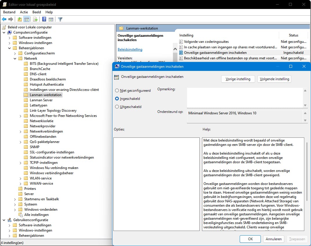 Stel, je hebt een gebruiker op lokaal NTFS-niveau alleen leesmachtigingen toegekend op een map, maar op het niveau van delen via het netwerk heb je de machtigingen ingesteld op Volledig beheer of op Wijzigen. Wat gebeurt er dan wanneer deze gebruiker de map benadert via het netwerk? Windows is hierin duidelijk: bij een machtigingenconflict wordt op een gedeelde map de meest beperkende combinatie van lokale en netwerkmachtigingen toegepast. Dit houdt in dat in dit scenario de gebruiker ook via het netwerk de map alleen zal kunnen openen en inkijken, maar dus niet bewerken.