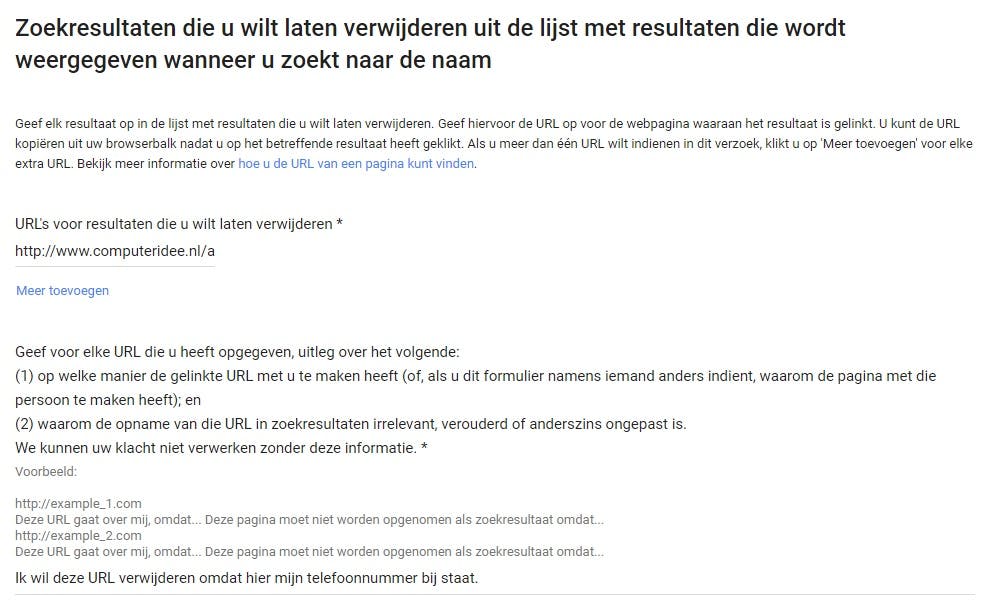 Het formulier om een verwijderverzoek in te dienen is goed verstopt, maar je vindt 'em hier: