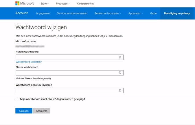 Het wachtwoord van je Microsoft-account pas je aan via je browser.