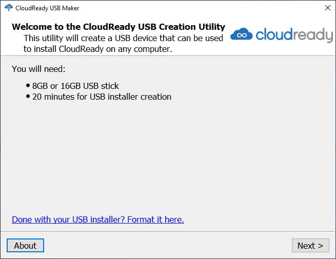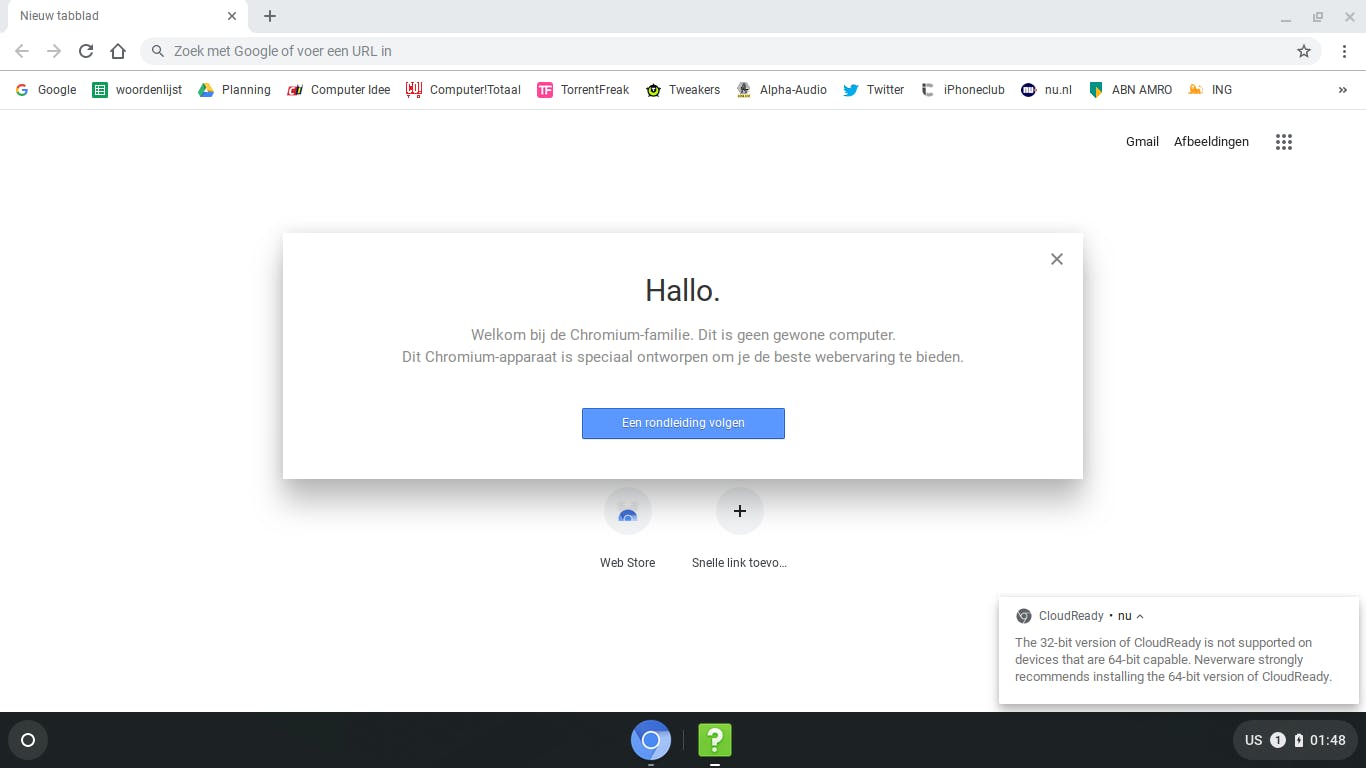 De officiële website van het Chromium-project bevat geen downloadlinks, dus we zijn genoodzaakt om het installatiebestand ergens anders op te pikken. Er zijn weliswaar diverse derde partijen die ‘kant-en-klare’ images aanbieden, maar de installatie en het gebruik hiervan blijkt in de praktijk een hele uitdaging. Wil je evengoed zelf een poging wagen, dan vind je online recente installatiebestanden. Weet wel waar je aan begint, want het is lastig om zo’n gekunstelde versie aan de praat te krijgen. In deze workshop kiezen we voor meer gebruiksgemak en gaan we aan de slag met CloudReady. Dit gratis besturingssysteem is gebaseerd op Chromium OS.