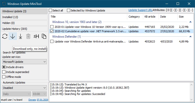 Je kunt hiervoor een externe tool overwegen, zoals het gratis en portable Windows Update MiniTool. Die voorziet in een grafische schil rond de Windows-updatefunctie, controleert op mogelijke updates en laat je zelf kiezen welke updates je wanneer wilt installeren.