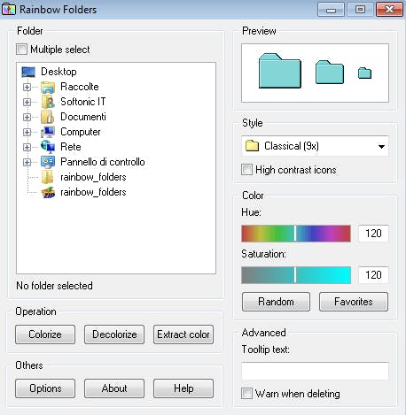 Rainbow Folders werkt zoals de naam al doet vermoeden alleen voor mappen, niet voor bestanden. Het programma is te benaderen door in de Verkenner met de rechtermuisknop op een map te klikken, aangezien het hier net als bij de andere twee genoemde tools om een shell-extensie gaat.
