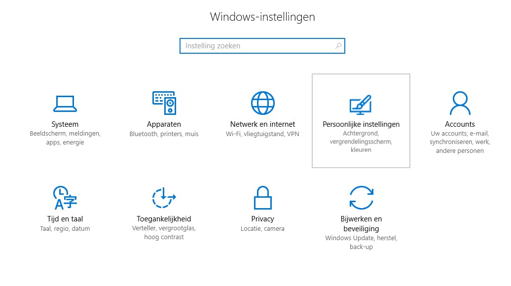 Standaard bestaan deze categorieën uit drie kolommen. Afhankelijk van het gekozen formaat van je tegels kun je 2 tot 6 tegels op een regel kwijt. Dat komt doordat een kleine tegel een halve kolom breed is, en een grote tegel is twee kolommen breed.