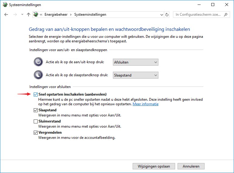 Zolang je geen van deze nadelen ondervindt, doe je er zeker goed aan de functie Snel opstarten in te schakelen. Dat kan als volgt: druk op Windows-toets+S, tik energie in, kies Een energiebeheerschema selecteren en klik links in beeld op Het gedrag van de aan/uit-knoppen bepalen. Klik wanneer nodig op Instellingen wijzigen die momenteel niet beschikbaar zijn en zorg dat er een vinkje staat bij Snel opstarten inschakelen (aanbevolen). Weet wel dat dit alleen de snelheid van het opstarten opschroeft nadat je Windows effectief had afgesloten, en dus niet bij een ‘warme’ herstart.