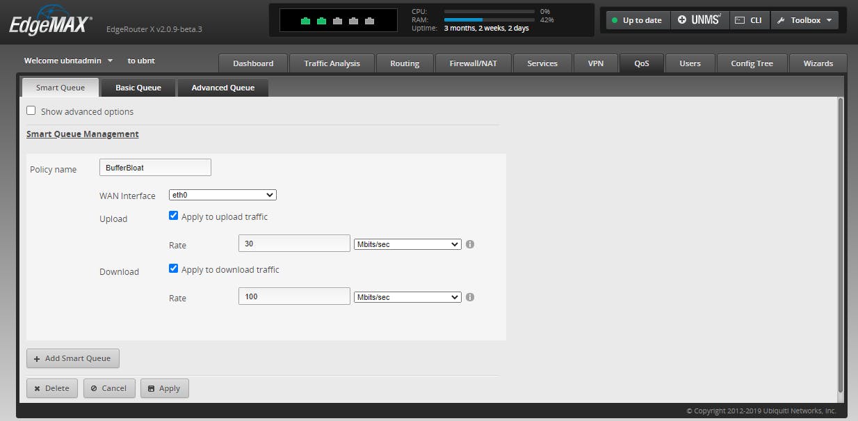SQM inschakelen op een EdgeRouter