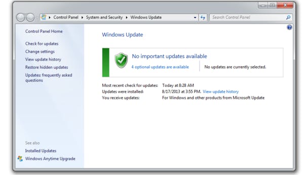 Zorg meteen ook dat je besturingssysteem helemaal up-to-date is door Windows Update te draaien. Het verwaarlozen van updates kan betekenen dat je belangrijke bug en prestatie fixes misloopt.