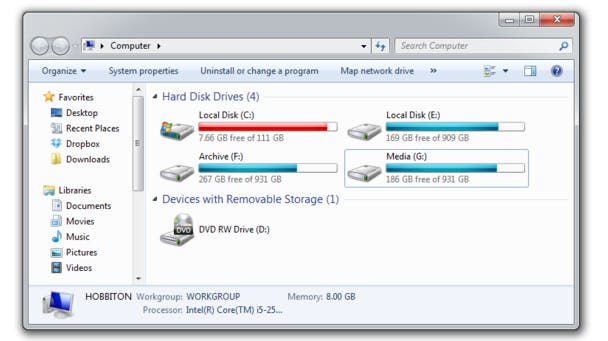Als je pc wel het probleem is, kijk dan of je genoeg ruimte vrij hebt op de harde schijf waarop je besturingssysteem staat. Windows heeft ruimte nodig om bestanden aan te maken terwijl je systeem draait. Als je harde schijf vol is, verminderen de prestaties.