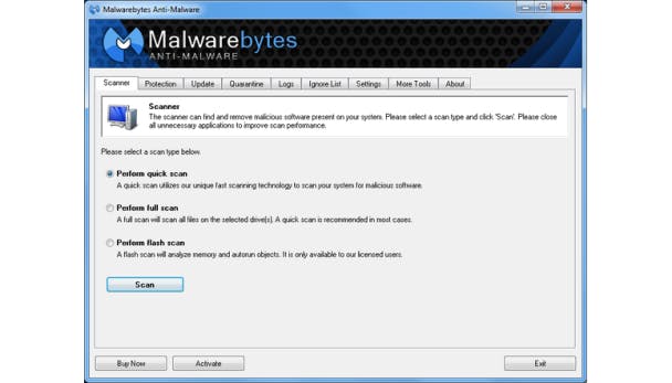 Het draaien van een volledige scan met betrouwbare antivirussoftware is je eerste stap. Als dat programma de adware niet vindt of verwijdert, probeer dan eens Malwarebytes Anti-Malware Free, een geweldige tool om allerlei soorten malware mee te verwijderen. Zorg alleen wel dat je je standaard antivirussoftware uitschakelt voordat je het programma draait.