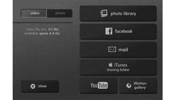 Met de gratis versie van iMotion HD kan een film in HD-kwaliteit (1280 bij 720 pixels) bewaard worden. Wil je liever Full HD hebben (1920 bij 1080 pixels) dan kan dat via een eenmalige in-app-aankoop van 1,79 euro. Je kunt de film in de filmrol van de telefoon bewaren, maar onder andere ook rechtstreeks op Facebook of YouTube neerzetten en via E-mail versturen.