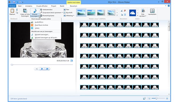Een timelapse bevat standaard geen geluid of muziek, omdat het een film is die wordt samengesteld uit losse foto's. In Movie Maker kan je via Muziek toevoegen op het tabblad Start alsnog muziek toevoegen. Dat kan een lokaal muziekbestand zijn of een gratis dan wel betaald muzieknummer via diensten als AudioMicro, Free Music Archive en Vimeo.