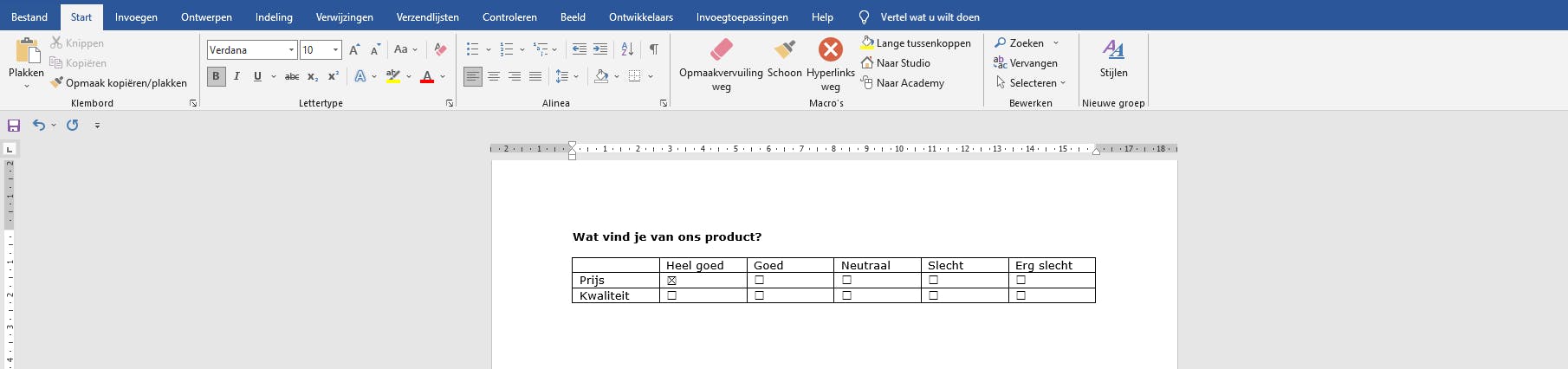 En daarmee heb je waarschijnlijk een goede basis om een vragenlijst in Word aan te maken.