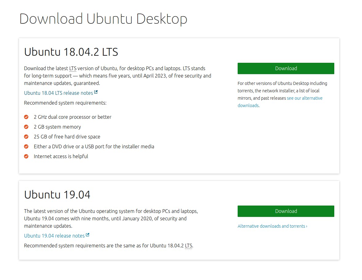 Van Ubuntu Desktop bestaan er twee versies, dus je dient eerst een keuze te maken: Ubuntu LTS of de normale Ubuntu-versie. Elke twee jaar in april komt er een LTS-versie uit, en elk half jaar in april en oktober verschijnt er een normale versie.