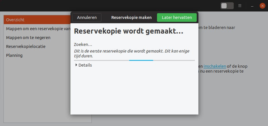 Zelfs als je veel in de cloud doet, staan er altijd nog wel bestanden op je computer die je liever niet verliest. Gelukkig maakt Ubuntu het eenvoudig om reservekopieën te maken. Open het programma Reservekopieën. Als je links op Mappen om een reservekopie van te maken klikt, zie je dat daar standaard je persoonlijke map staat. Met het plusteken onderaan voeg je daar nog andere mappen aan toe en met het minteken verwijder je mappen weer uit de lijst. Bij Mappen om te negeren stel je in van welke submappen uit de ingestelde mappen je geen reservekopie hoeft. Standaard staan daar de prullenbak en je downloadmap. Nadat je ingesteld hebt wat je wilt kopiëren, geef je aan waar je de reservekopie naartoe gekopieerd wilt hebben. In Reservekopielocatie kun je een account bij Google Drive of Nextcloud kiezen, een netwerkserver op je lokale netwerk of een lokale map. Dat laatste is natuurlijk niet zo veilig als back-uplocatie. Kies je een netwerkserver, vul dan bij Netwerklocatie een url in, inclusief het protocol, bijvoorbeeld smb://gebruikersnaam@NAS/backups. Vul daarna de map in waarin de reservekopie terecht moet komen. Ga dan links naar Overzicht en klik op Nu reservekopie maken om te testen of het werkt. De eerste keer krijg je de vraag om de benodigde pakketten te installeren, doe dat. Ook krijg je de vraag om een wachtwoord in te stellen om je reservekopie mee te versleutelen. Als het uploaden van je reservekopie gelukt is, kun je in Planning automatische reservekopieën instellen. Een reservekopie herstellen gaat even eenvoudig: klik in Overzicht op Herstellen. Probeer dat ook eens uit, dan weet je helemaal zeker dat je met een gerust hart kunt gaan slapen: je werk in Ubuntu zal niet zomaar verloren gaan!