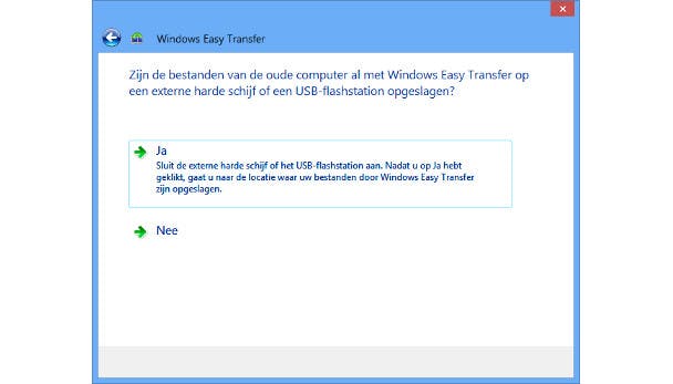 Sluit de schijf in kwestie nu aan op je nieuwe pc. Start wederom de Easy Transfer-tool, kies wederom voor de laatste optie (harde schijf of USB-station) en geef ditmaal aan dat je de tool uitvoert op je nieuwe pc. Klik op Ja bij de vraag of de bestanden van je oude computer met Easy Transfer zijn opgeslagen op een externe harde schijf. Blader nu naar de map waarin je het bestand hebt opgeslagen, selecteer dit bestand en klik op Openen. De bestanden van je oude pc worden nu via het Easy Transfer-bestand overgezet naar je nieuwe pc, terwijl jij wat anders kunt gaan doen.