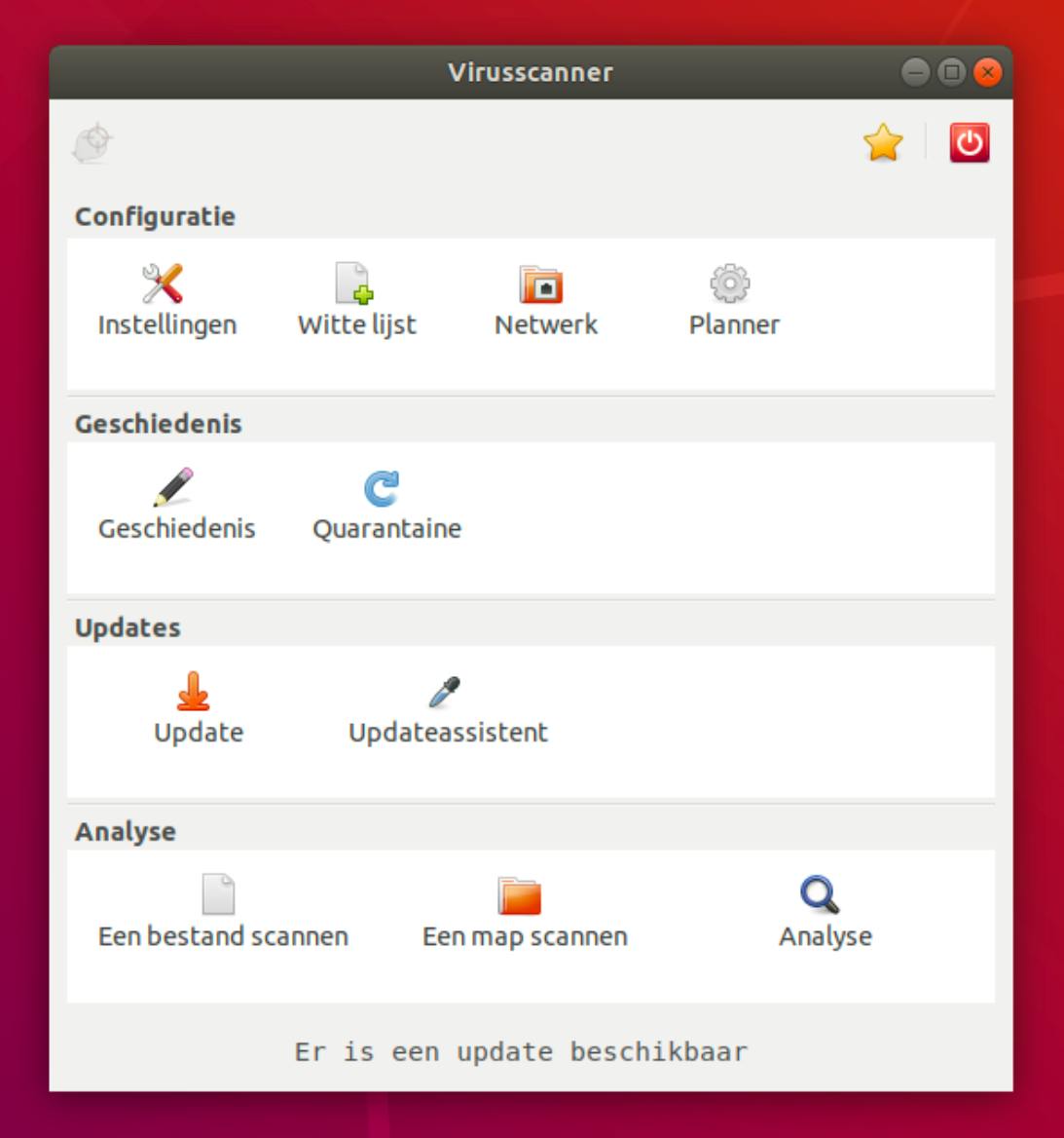 Op deze pagina vind je een serie links naar voor Ubuntu beschikbare scanners. Behalve gratis exemplaren tref je er ook commerciële oplossingen van een aantal bekende namen aan. Wil je bijvoorbeeld het gratis opensource ClamAV gebruiken, dan installeer je dat als volgt. Start de terminal en voer het commando sudo apt-get install clamav uit. Installeer ook ClamTK voor een grafische gebruikersinterface met sudo apt-get install clamtk. En wilt u ook realtime scannen, dan tikt u sudo apt-get install clamav-daemon. Meer info hier.