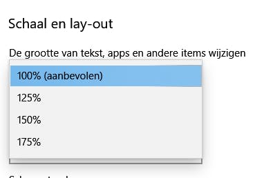 Heb je last van kleine tekst en andere items? Pas dan je Beeldscherminstellingen aan. Ga naar het bureaublad en klik ergens op een leeg plekje met de rechtermuisknop. In het menu selecteer je Beeldscherminstellingen. In het onderdeel Schaal en lay-out kun je de grootte van deze items aanpassen. Normaal staat die op 100% maar je kunt die bijvoorbeeld ook op 125% of hoger instellen. De lettergrootte verandert automatisch mee. Als dat is gebeurd, klik je onder deze instelling op de opdracht Geavanceerde schaalinstellingen. Daar activeer je de functie waarmee Windows de weergave verbetert als de beeldinstellingen wijzigen. Op die manier voorkom je wazig beeld.