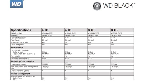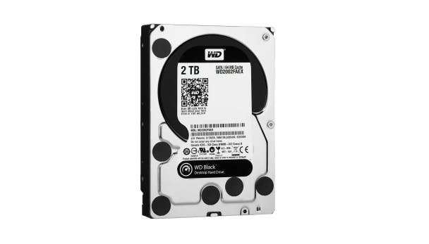 Wens je een snelle interne schijf met veel opslagcapaciteit? Dit 3,5inch-exemplaar van Western Digital past precies binnen dit plaatje. De schijf heeft een rotatiesnelheid van 7200 rpm en 64 MB cachegeheugen. Ideaal dus om lekker vlot bestanden op te slaan en te laden. Het 2TB-model is verkrijgbaar voor ongeveer 135 euro.