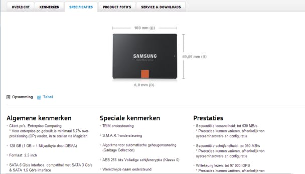 Samsung maakt momenteel de vlotste SSD's. Als je een exemplaar van de 840 Series Pro in je computer monteert, ben je verzekerd van een supersnel systeem. De 128GB-versie koop je voor ongeveer 120 euro bij verschillende webshops.