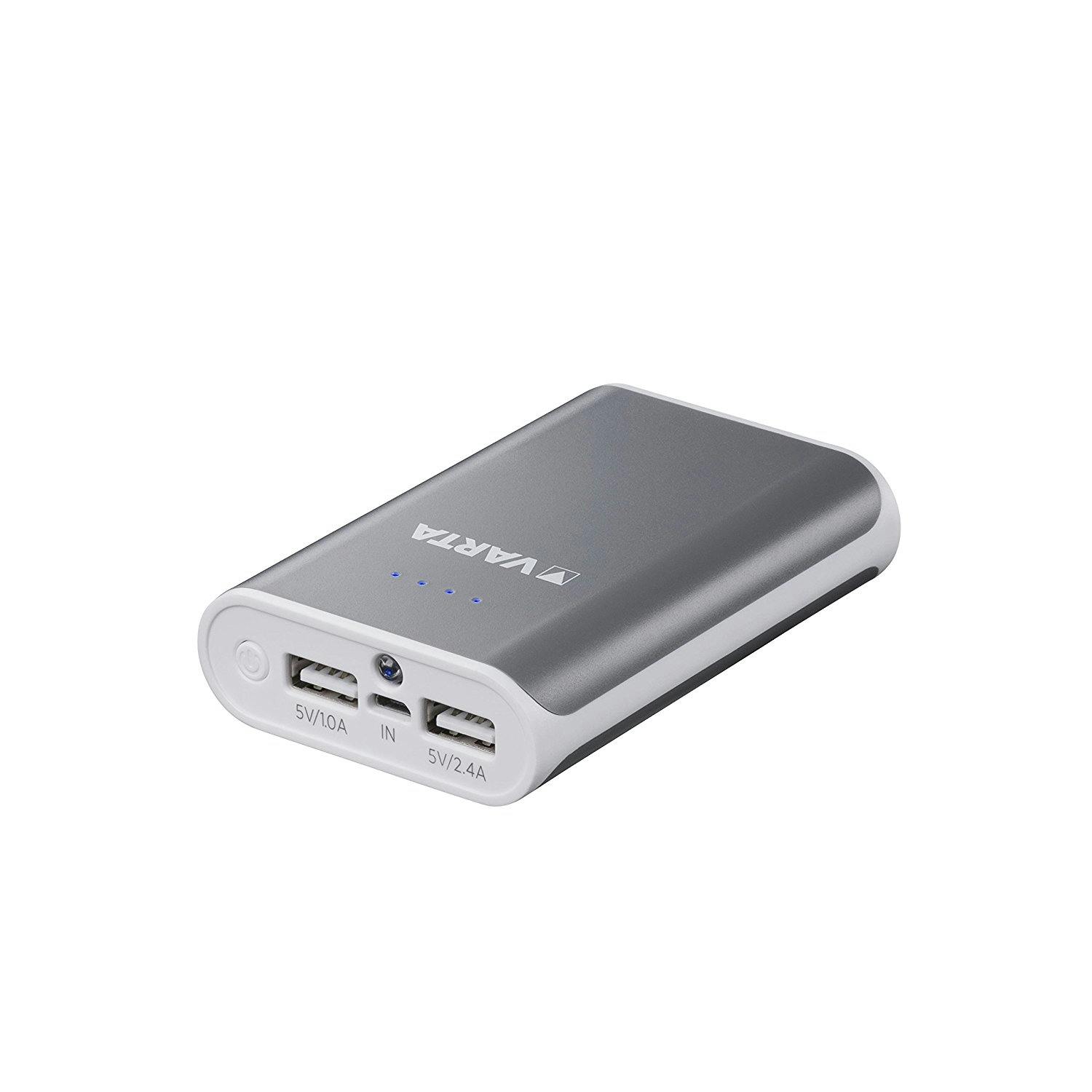 Varta Powerpack 6000Prijs: € 20,- Wie behoorlijk wat accucapaciteit voor een acceptabele prijs wenst, kan de Powerpack 6000 van het Duitse batterijmerk Varta overwegen. Zoals de productnaam al doet vermoeden, is er in de behuizing een accu met een capaciteit van 6.000 mAh verwerkt. Volgens de fabrikant is dat genoeg om tweemaal een smartphone of eenmaal een tablet volledig op te laden. De zijkant bevat hiervoor twee usb-poorten met een stroomsterkte van 1 en 2,4 ampère. Er is ook nog een zaklamp geïntegreerd. Fijn is dat de bovenzijde vier led-indicators bevat om de huidige acculading aan te duiden. Opladen gebeurt met een micro-usb-kabel.
