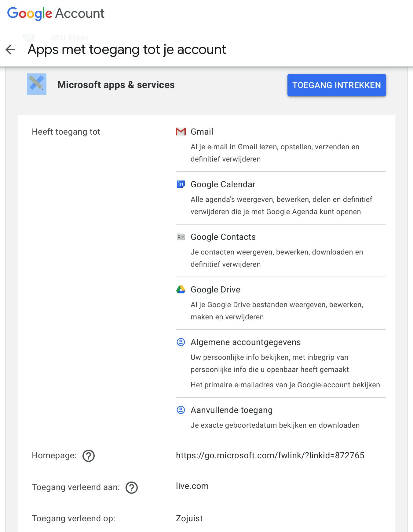 In de volgende stap wijst Google je er nog eens op dat je door deze koppeling een hoop informatie deelt met Microsoft, waarvoor je voordien alleen op de privacybelofte van Google rekende. Dan hebben we het niet alleen over mailberichten die ook beschikbaar zijn voor Microsoft apps & services, of je geboortedatum die je hierdoor prijs geeft. In theorie kan Microsoft vanaf nu zelfs bij al je Google Drive-bestanden, je Gmail-contacten en alle Google Agenda-gegevens. Het blijft dus een kwestie van vertrouwen. Klik op Toestaan om de verbinding te maken. Op je herstelmailadres ontvang je een beveiligingsmelding van Google. Wil je later de toegang van Microsoft tot je Google-gegevens toch ongedaan maken? Ga dan naar je Google-account op https://myaccount.google.com/permissions en verwijder daar de koppeling alsnog.