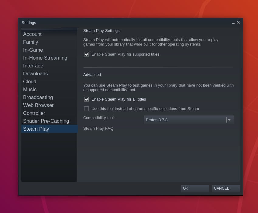 Het aanbod van Linux-games mag dan rap groter worden, de meeste grote titels zijn alleen beschikbaar voor Windows. Wederom komt Valve ons redden met een nieuwe functie binnen de Linux-variant van Steam: Steam Play. Steam Play gebruikt een aangepaste versie van Wine: een opensource-programma waarmee Windows-software gebruikt kan worden in een Linux-omgeving. Deze functie is alleen nog beschikbaar in bèta en zal dus apart geactiveerd moeten worden. Om het te activeren klik je in Steam op Steam en ga naar Settings. In het tabblad Account kun je onder het kopje Beta participation klikken op Change. Een nieuw venster zal openen, kies voor Steam Beta Update. Nadat je op OK hebt geklikt zal Steam opnieuw moeten opstarten en updaten voordat Steam Play beschikbaar komt. Om Steam Play te activeren open je weer Settings, waar je onder het nieuwe tabblad Steam Play een vinkje zet bij Enable Steam Play for supported titles. Hiermee worden de Windows-games beschikbaar die door Valve zijn getest. Met het vinkje bij Enable Steam Play for all titles komen alle Windows-games in Steam beschikbaar, maar kun je regelmatig tegen bugs of zeer lage framerates aanlopen.
