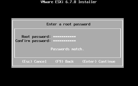 Een belangrijke stap is het root-wachtwoord. Dit heb je nodig om later in te loggen. Kies een voldoende complex wachtwoord en zet het in een wachtwoordmanager zoals KeePass of Enpass. Vervolg de installatie met Enter. De installatiewizard veegt de harde schijf schoon en deelt hem opnieuw in. Bevestig met F11 dat dit akkoord is. Verwijder als installatie klaar is de cd (of stick) uit de pc en druk op Enter om de ESXi-server voor het eerst te starten.