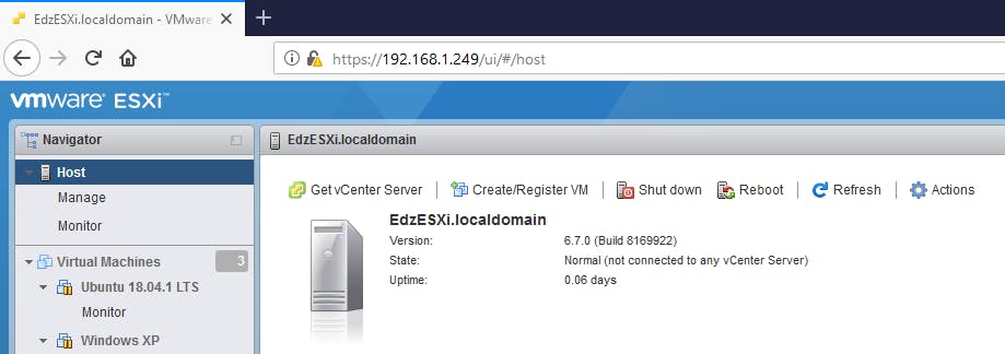Installeer je ESXi op een computer, dan kun je dat systeem dus nergens anders meer voor gebruiken dan om virtuele machines te hosten. Je kunt dus niet rechtstreeks inloggen op de pc, maar alleen via de browser vanaf een andere computer. Vanaf die andere computer kun je wel eindeloos virtuele machines maken en gebruiken.
