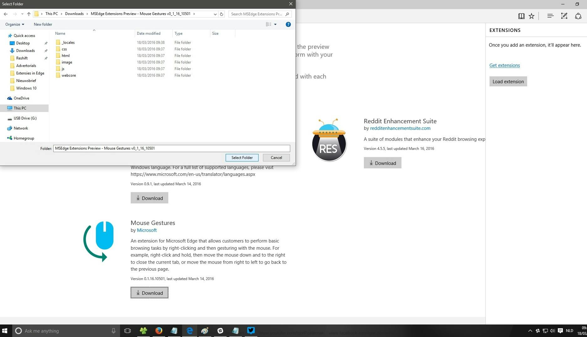 Vervolgens moet je de extensies handmatig inladen via Edge, door via 'Load extension' de complete map te selecteren die je zojuist hebt geïnstalleerd.