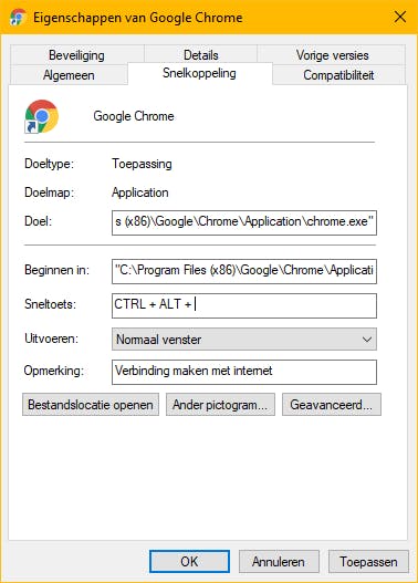 Toetscombinaties, een groot aantal zijn er in Windows voorgeprogrammeerd, maar om Windows volledig te personaliseren kun je ook je eigen combinaties maken. Stel dat je Chrome wilt openen met de toetsencombinatie Shift+Alt+C. Navigeer dan in de Windows Verkenner naar Chrome, rechtsklik op het pictogram, klik vervolgens op Eigenschappen en open het tabblad Snelkopppeling. In het veld Sneltoets kun je nu aangeven met welke toetscombinatie je dit programma wilt openen.