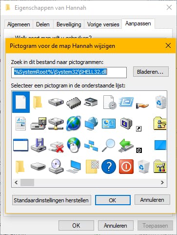 Elke map die je aanmaakt in Verkenner krijgt standaard hetzelfde pictogram. Maar wil je een ander pictogram om duidelijk te maken wat voor soort bestanden er in die map zitten, klik dan met rechts op de map en kies voor Eigenschappen. Klik op het tabblad Aanpassen, onderin staat de optie Ander pictogram. Wanneer je hierop klikt, kun je kiezen uit een grote hoeveelheid pictogrammen om wat meer herkenbaarheid in je mappenstructuur te creëren.