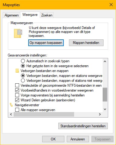In Windows Verkenner kun je aangeven dat je de verborgen mappen gewoon wilt kunnen zien