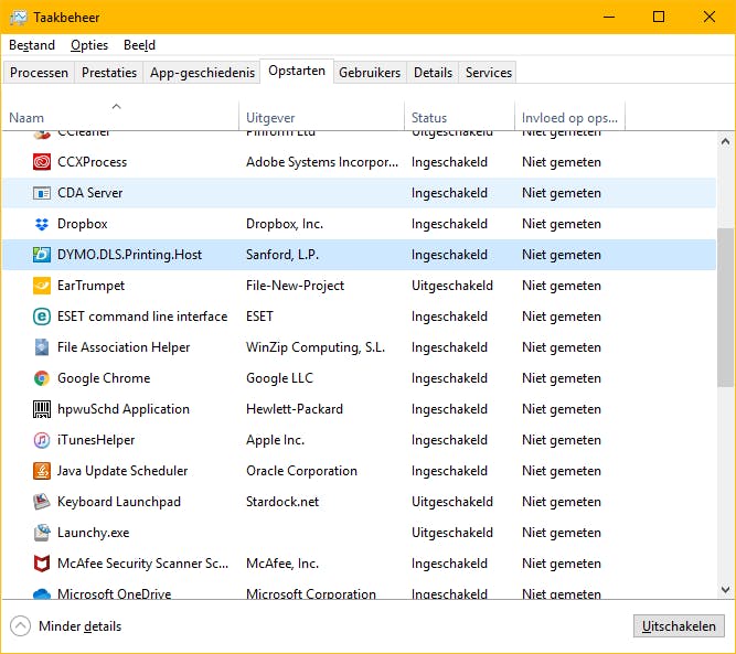 Je kunt je computer meestal aanzienlijk versnellen door het aantal programma’s dat automatisch met de computer mee opstart te verminderen. Druk op Ctrl+Alt+Del en klik op Taakbeheer. In het tabblad Opstarten klik je nu op de app die je wilt uitschakelen en daarna op Uitschakelen. Dit verandert niets aan het programma, het wordt alleen niet meer automatisch opgestart. Wil je weten wat een programma precies is of doet, klik er dan met je rechtermuisknop op en kies voor Online zoeken.